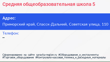 Средняя общеобразовательная школа №5 по адресу Приморский край, Спасск-Дальний, Советская улица, 110 в дальнейшем Организация, размещена в следующих категориях: