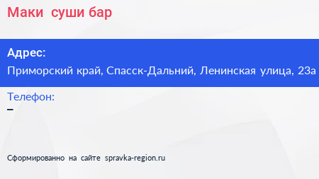 Маки+, суши-бар по адресу Приморский край, Спасск-Дальний, Ленинская улица, 23а в дальнейшем Организация, размещена в следующих категориях:
