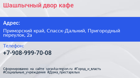 Шашлычный двор, кафе по адресу Приморский край, Спасск-Дальний, Пригородный переулок, 2а в дальнейшем Организация, размещена в следующих категориях: