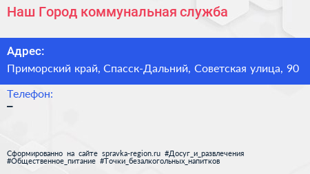 Наш Город, коммунальная служба по адресу Приморский край, Спасск-Дальний, Советская улица, 90 в дальнейшем Организация, размещена в следующих категориях: