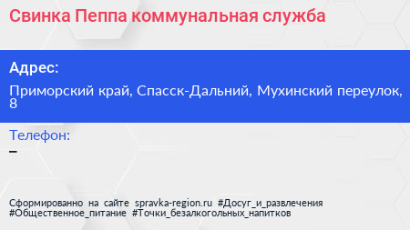 Свинка Пеппа, коммунальная служба по адресу Приморский край, Спасск-Дальний, Мухинский переулок, 8 в дальнейшем Организация, размещена в следующих категориях: