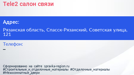 Tele2, салон связи по адресу Рязанская область, Спасск-Рязанский, Советская улица, 121 в дальнейшем Организация, размещена в следующих категориях: