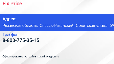 Fix Price по адресу Рязанская область, Спасск-Рязанский, Советская улица, 59 в дальнейшем Организация, размещена в следующих категориях: