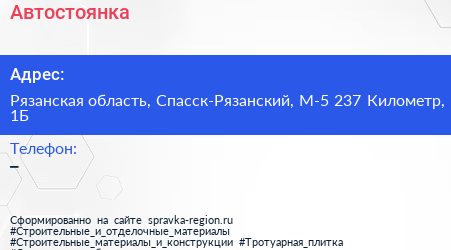 Автостоянка по адресу Рязанская область, Спасск-Рязанский, М-5 237 Километр, 1Б в дальнейшем Организация, размещена в следующих категориях: