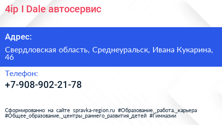4ip I Dale, автосервис по адресу Свердловская область, Среднеуральск, Ивана Кукарина, 46 в дальнейшем Организация, размещена в следующих категориях: