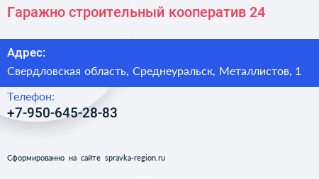 Гаражно-строительный кооператив №24 по адресу Свердловская область, Среднеуральск, Металлистов, 1 в дальнейшем Организация, размещена в следующих категориях: