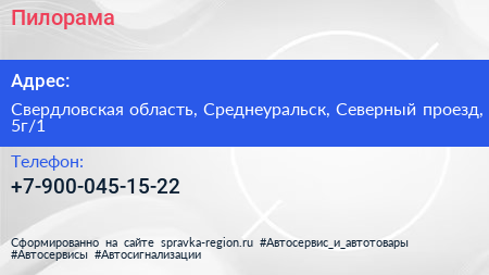 Пилорама по адресу Свердловская область, Среднеуральск, Северный проезд, 5г/1 в дальнейшем Организация, размещена в следующих категориях: