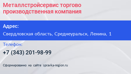 Металлстройсервис, торгово-производственная компания по адресу Свердловская область, Среднеуральск, Ленина, 1 в дальнейшем Организация, размещена в следующих категориях: