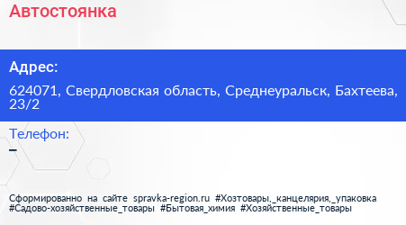 Автостоянка по адресу 624071, Свердловская область, Среднеуральск, Бахтеева, 23/2 в дальнейшем Организация, размещена в следующих категориях: