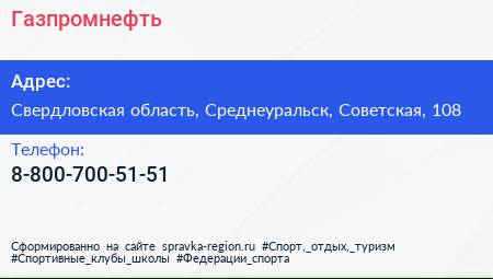 Газпромнефть по адресу Свердловская область, Среднеуральск, Советская, 108 в дальнейшем Организация, размещена в следующих категориях: