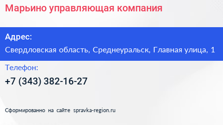 Марьино, управляющая компания по адресу Свердловская область, Среднеуральск, Главная улица, 1 в дальнейшем Организация, размещена в следующих категориях: