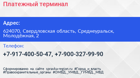 Платежный терминал по адресу 624070, Свердловская область, Среднеуральск, Молодёжная, 2 в дальнейшем Организация, размещена в следующих категориях: