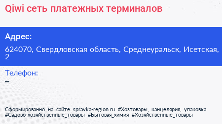 Qiwi, сеть платежных терминалов по адресу 624070, Свердловская область, Среднеуральск, Исетская, 2 в дальнейшем Организация, размещена в следующих категориях: