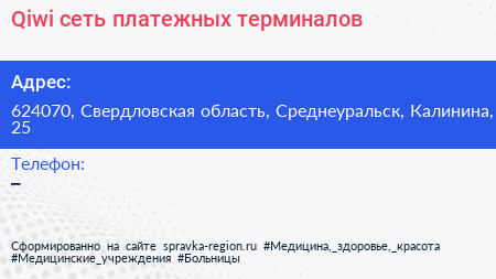 Qiwi, сеть платежных терминалов по адресу 624070, Свердловская область, Среднеуральск, Калинина, 25 в дальнейшем Организация, размещена в следующих категориях: