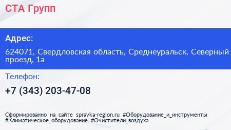 СТА Групп по адресу 624071, Свердловская область, Среднеуральск, Северный проезд, 1а в дальнейшем Организация, размещена в следующих категориях: