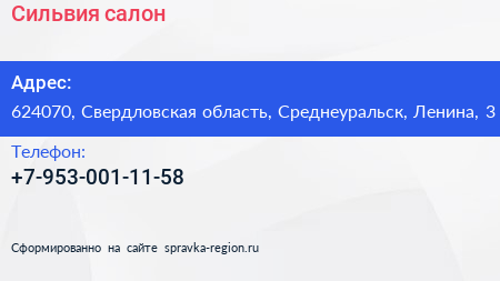 Сильвия, салон по адресу 624070, Свердловская область, Среднеуральск, Ленина, 3 в дальнейшем Организация, размещена в следующих категориях: