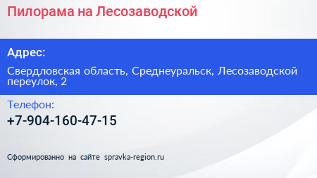 Пилорама на Лесозаводской по адресу Свердловская область, Среднеуральск, Лесозаводской переулок, 2 в дальнейшем Организация, размещена в следующих категориях: