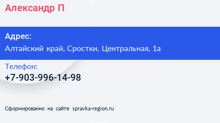 Александр-П по адресу Алтайский край, Сростки, Центральная, 1а в дальнейшем Организация, размещена в следующих категориях: