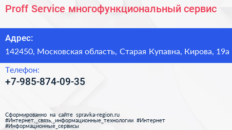 Proff Service, многофункциональный сервис по адресу 142450, Московская область, Старая Купавна, Кирова, 19а в дальнейшем Организация, размещена в следующих категориях: