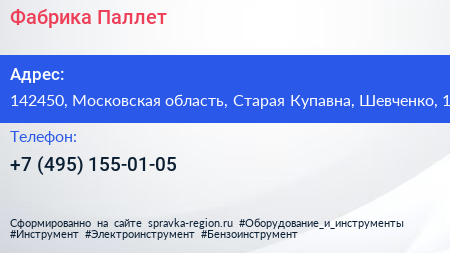 Фабрика Паллет по адресу 142450, Московская область, Старая Купавна, Шевченко, 1 в дальнейшем Организация, размещена в следующих категориях: