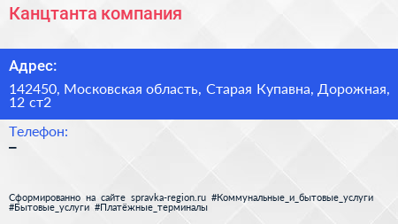 Канцтанта, компания по адресу 142450, Московская область, Старая Купавна, Дорожная, 12 ст2 в дальнейшем Организация, размещена в следующих категориях: