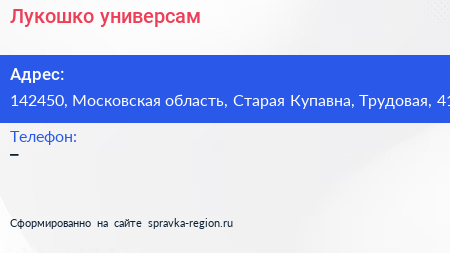 Лукошко, универсам по адресу 142450, Московская область, Старая Купавна, Трудовая, 41 в дальнейшем Организация, размещена в следующих категориях: