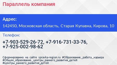 Параллель, компания по адресу 142450, Московская область, Старая Купавна, Кирова, 10 в дальнейшем Организация, размещена в следующих категориях: