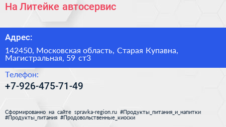 На Литейке, автосервис по адресу 142450, Московская область, Старая Купавна, Магистральная, 59 ст3 в дальнейшем Организация, размещена в следующих категориях: