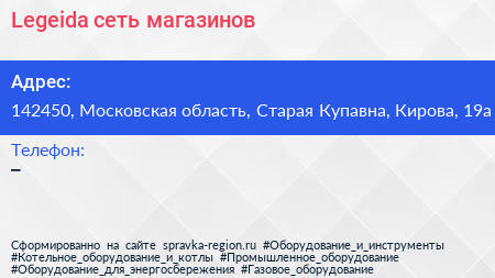 Legeida, сеть магазинов по адресу 142450, Московская область, Старая Купавна, Кирова, 19а в дальнейшем Организация, размещена в следующих категориях: