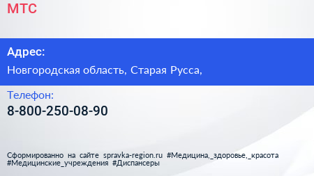 МТС по адресу Новгородская область, Старая Русса, в дальнейшем Организация, размещена в следующих категориях: