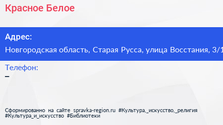 Красное & Белое по адресу Новгородская область, Старая Русса, улица Восстания, 3/1 в дальнейшем Организация, размещена в следующих категориях: