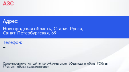АЗС по адресу Новгородская область, Старая Русса, Санкт-Петербургская, 69 в дальнейшем Организация, размещена в следующих категориях: