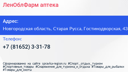 ЛенОблФарм, аптека по адресу Новгородская область, Старая Русса, Гостинодворская, 43 в дальнейшем Организация, размещена в следующих категориях: