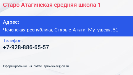 Старо-Атагинская средняя школа №1 по адресу Чеченская республика, Старые Атаги, Мутушева, 51 в дальнейшем Организация, размещена в следующих категориях: