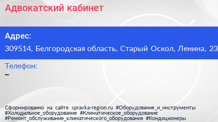 Адвокатский кабинет по адресу 309514, Белгородская область, Старый Оскол, Ленина, 23 в дальнейшем Организация, размещена в следующих категориях: