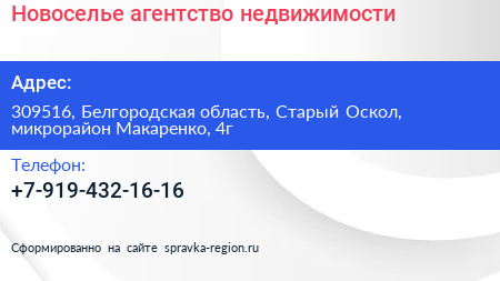 Новоселье, агентство недвижимости по адресу 309516, Белгородская область, Старый Оскол, микрорайон Макаренко, 4г в дальнейшем Организация, размещена в следующих категориях: