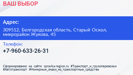 ВАШ ВЫБОР по адресу 309512, Белгородская область, Старый Оскол, микрорайон Жукова, 45 в дальнейшем Организация, размещена в следующих категориях: