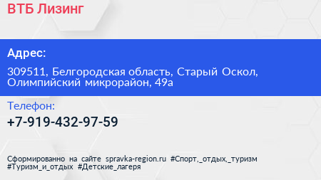 ВТБ Лизинг по адресу 309511, Белгородская область, Старый Оскол, Олимпийский микрорайон, 49а в дальнейшем Организация, размещена в следующих категориях: