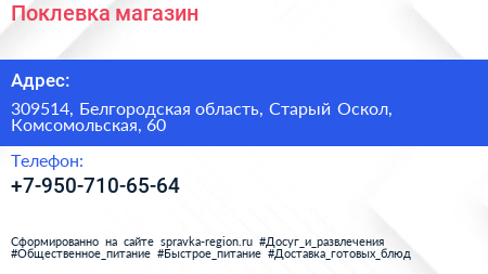 Поклевка, магазин по адресу 309514, Белгородская область, Старый Оскол, Комсомольская, 60 в дальнейшем Организация, размещена в следующих категориях: