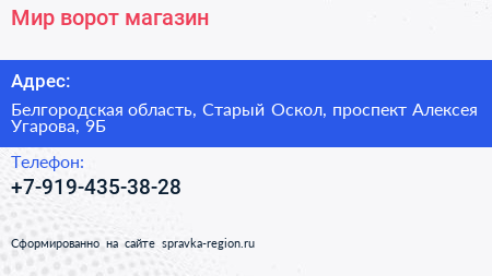 Мир ворот, магазин по адресу Белгородская область, Старый Оскол, проспект Алексея Угарова, 9Б в дальнейшем Организация, размещена в следующих категориях: