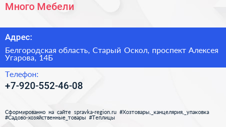 Много Мебели по адресу Белгородская область, Старый Оскол, проспект Алексея Угарова, 14Б в дальнейшем Организация, размещена в следующих категориях: