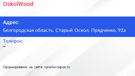 OskolWood по адресу Белгородская область, Старый Оскол, Прядченко, 92а в дальнейшем Организация, размещена в следующих категориях: