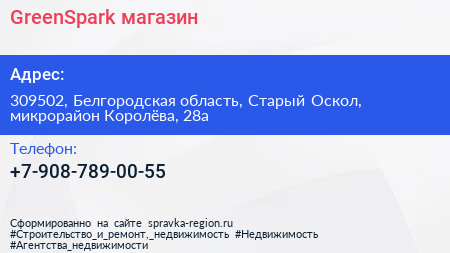 GreenSpark, магазин по адресу 309502, Белгородская область, Старый Оскол, микрорайон Королёва, 28а в дальнейшем Организация, размещена в следующих категориях: