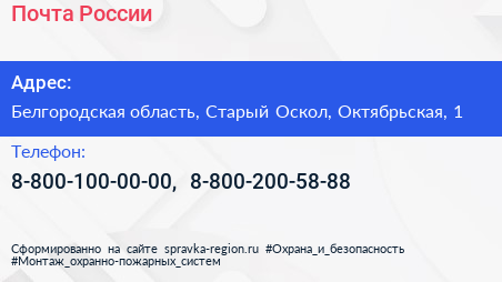 Почта России по адресу Белгородская область, Старый Оскол, Октябрьская, 1 в дальнейшем Организация, размещена в следующих категориях: