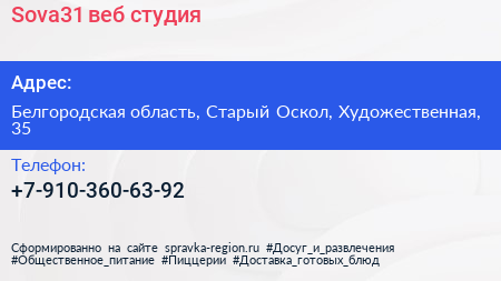 Sova31, веб-студия по адресу Белгородская область, Старый Оскол, Художественная, 35 в дальнейшем Организация, размещена в следующих категориях: