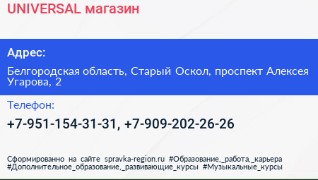 UNIVERSAL, магазин по адресу Белгородская область, Старый Оскол, проспект Алексея Угарова, 2 в дальнейшем Организация, размещена в следующих категориях:
