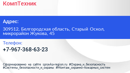 КомпТехник по адресу 309512, Белгородская область, Старый Оскол, микрорайон Жукова, 45 в дальнейшем Организация, размещена в следующих категориях:
