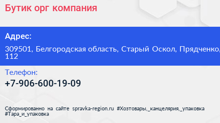 Бутик.орг, компания по адресу 309501, Белгородская область, Старый Оскол, Прядченко, 112 в дальнейшем Организация, размещена в следующих категориях: