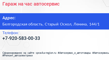 Гараж на час, автосервис по адресу Белгородская область, Старый Оскол, Ленина, 144/1 в дальнейшем Организация, размещена в следующих категориях: