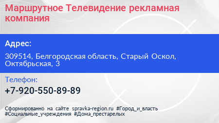 Маршрутное Телевидение, рекламная компания по адресу 309514, Белгородская область, Старый Оскол, Октябрьская, 3 в дальнейшем Организация, размещена в следующих категориях: